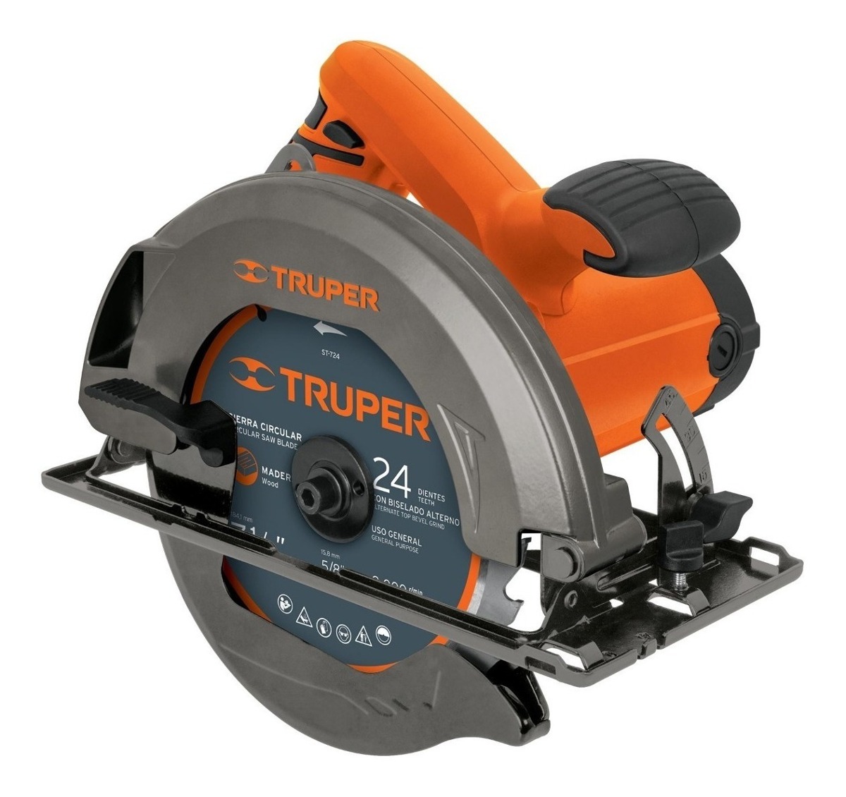 Sierra Circular Profesional 7 1/4´ 1500 W. CARACTERÍSTICAS Balero de bolas, que prolonga la vida útil de la máquina. Zapata metálica. Diseño ergonómico de 2 mangos para mayor comodidad y control. Guarda retráctil para protección del disco y del operador. Carbones expuestos, que permiten cambiarlos fácil y rápidamente. Palanca de ajuste rápido de profundidad de corte. Palanca de ajuste rápido de ángulo de corte.